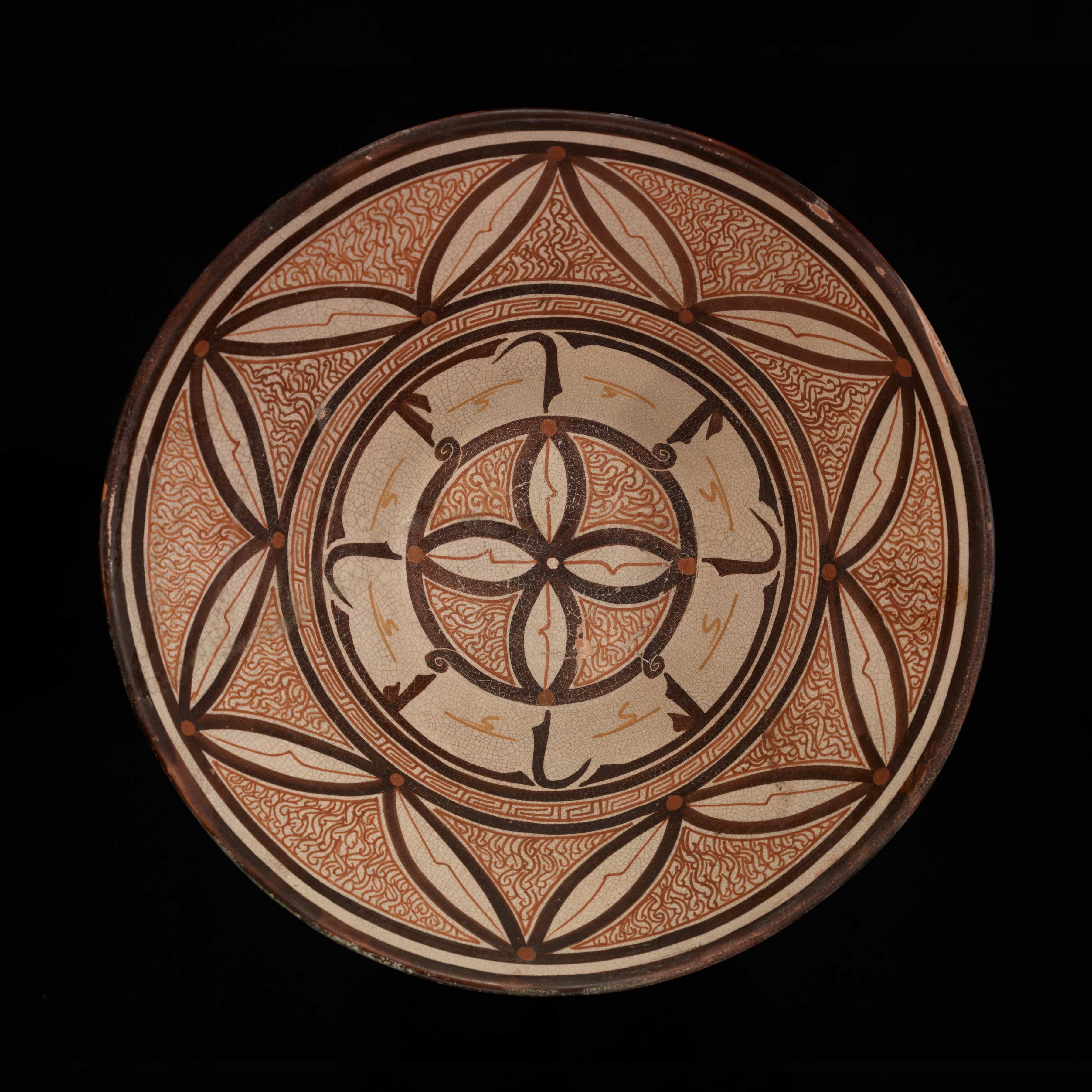 Earthenware, cream slip with dark brown to light-brown and